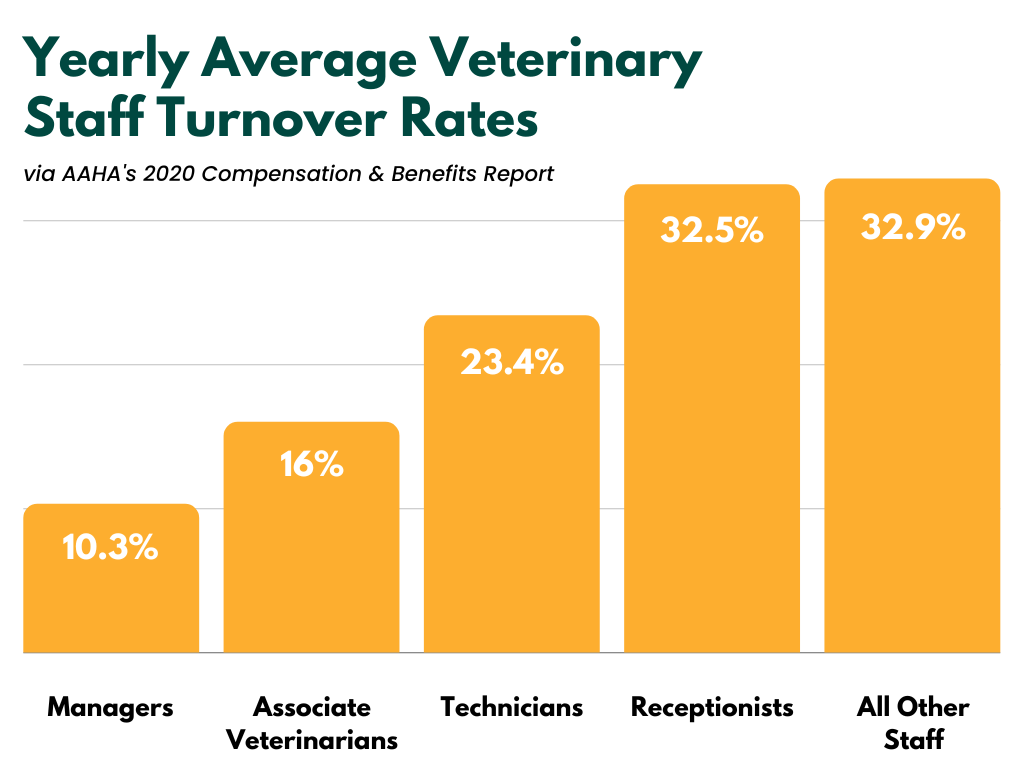 According to AAHA’s Compensation & Benefits report, the average yearly veterinary team turnover rate is 23%.