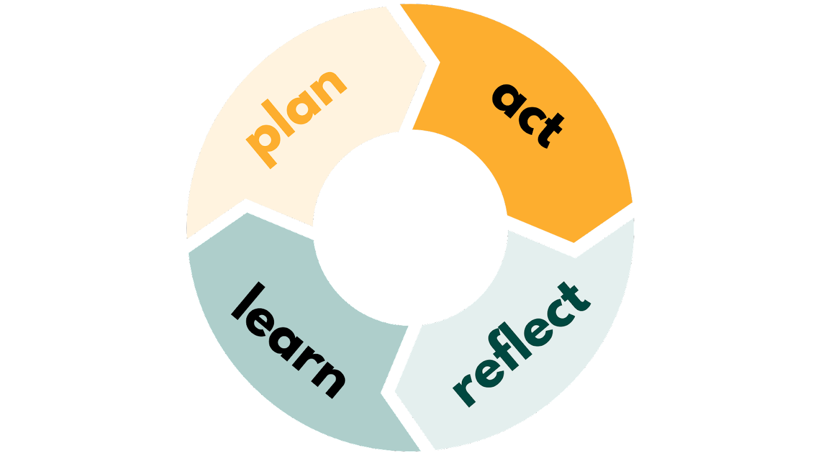 Looking back won’t help any of us, and to maintain that forward momentum an Act-Reflect-Learn-Plan approach (shown below) becomes of vital importance.