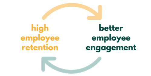 When you have high retention, employees will form greater bonds with their coworkers, leading them to be happier and more engaged in their jobs, leading to continued high retention.
