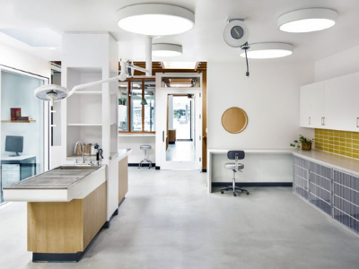 At Bond, we know that pets are a part of our families, and they too deserve a positive experience at the vet. We want them to feel comfortable and relaxed during their visit. Features like pastel walls, warm lighting and an abundance of natural light and frequently cleansed/ circulated air help with this. All cat parents know that our feline friends love to relax in high places. You may also notice that our lobby features two levels of seating, similar to an amphitheater, and this was designed with cats in mind.