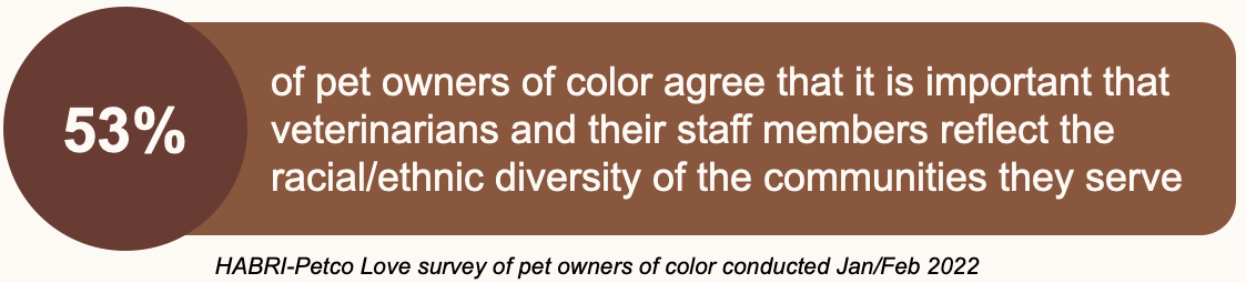 The HABRI-Petco Love survey found 53% of pet owners of color agree that it is important that veterinarians and their staff members reflect the racial/ethnic diversity of the communities they serve.