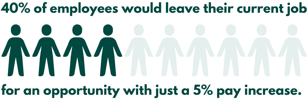 According to WTW, 40% of employees would leave a job for an opportunity with a 5% pay increase.